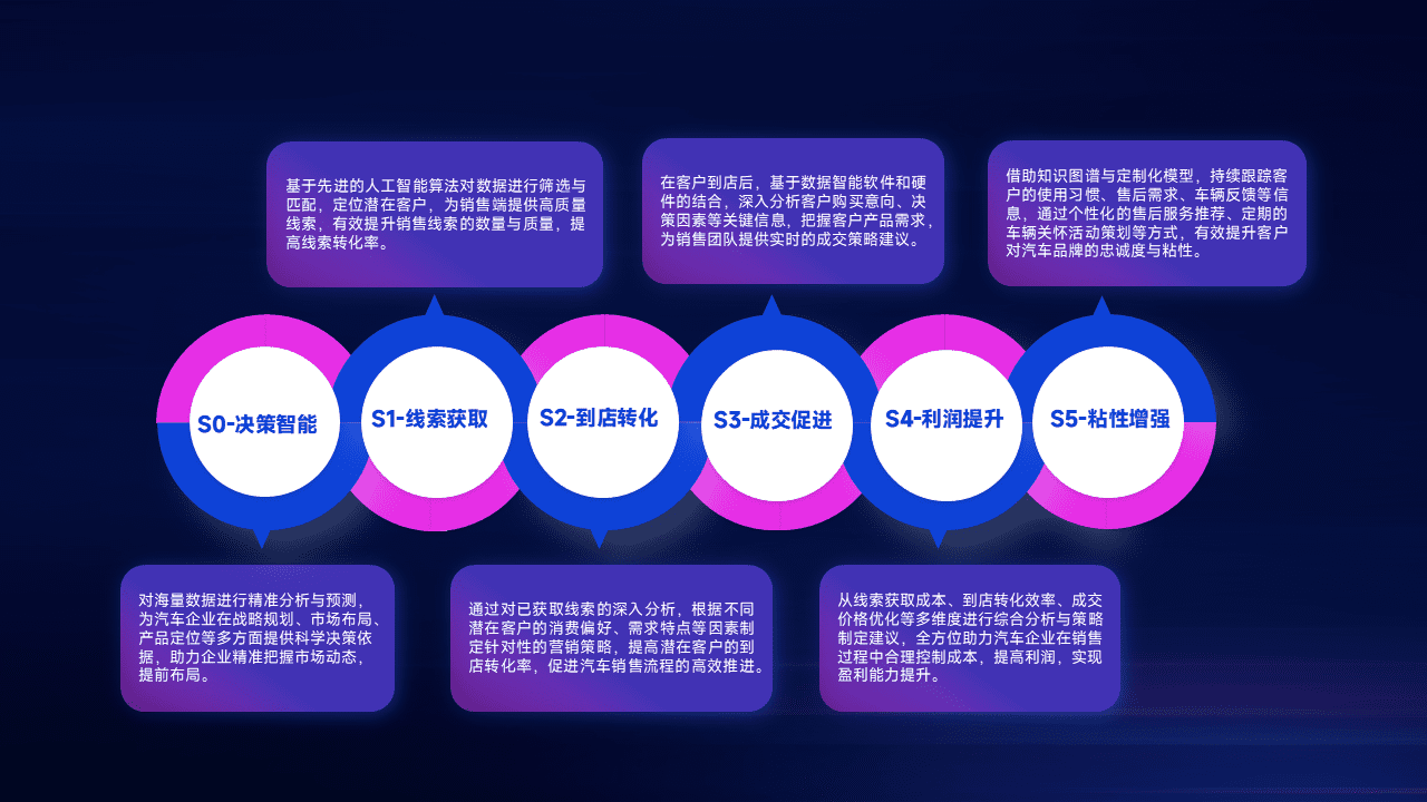 通过拓宽潜在客户来源、、、、优化线索分配并提高到店转化率,,,,以增强销售效率。。。。同时,,利用线索数据不断优化分析模型,,,有效提升转化率,,扩大营销影响力。。。。